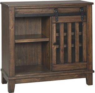 Display your items on the 3 adjustable shelves of the Brookport accent cabinet. Slide the smooth-gliding, open-slat door to choose which side you wish to showcase and which side to conceal.