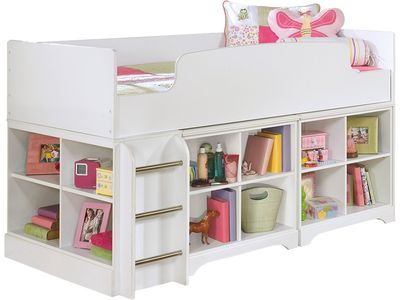 The Lulu twin size loft bed is the solution to maximizing your child’s bedroom space in style. This bed comes complete with bed slats and is compatible with your choice of drawers, bookcase with ladder, or fixed shelves.